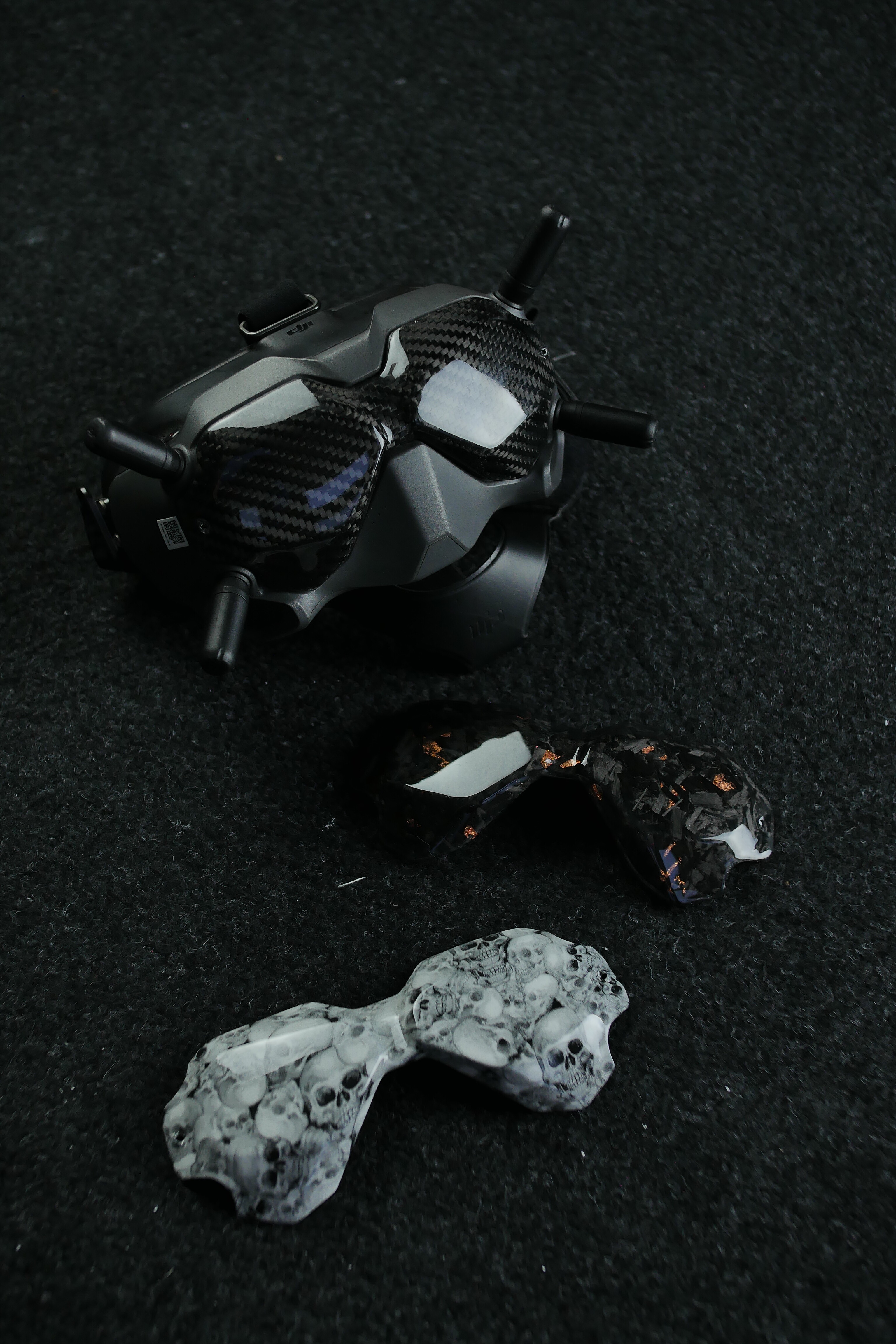 Nakładki na gogle FPV wykonane w 100% z Carbonu w dwóch wersjach. Twill 2x2 oraz Fordged Carbon z miedzianymi płatkami. Całość pokryta lakierem bezbarwnym w wysokim połysku. Tak jak Pan Bóg przykazał.