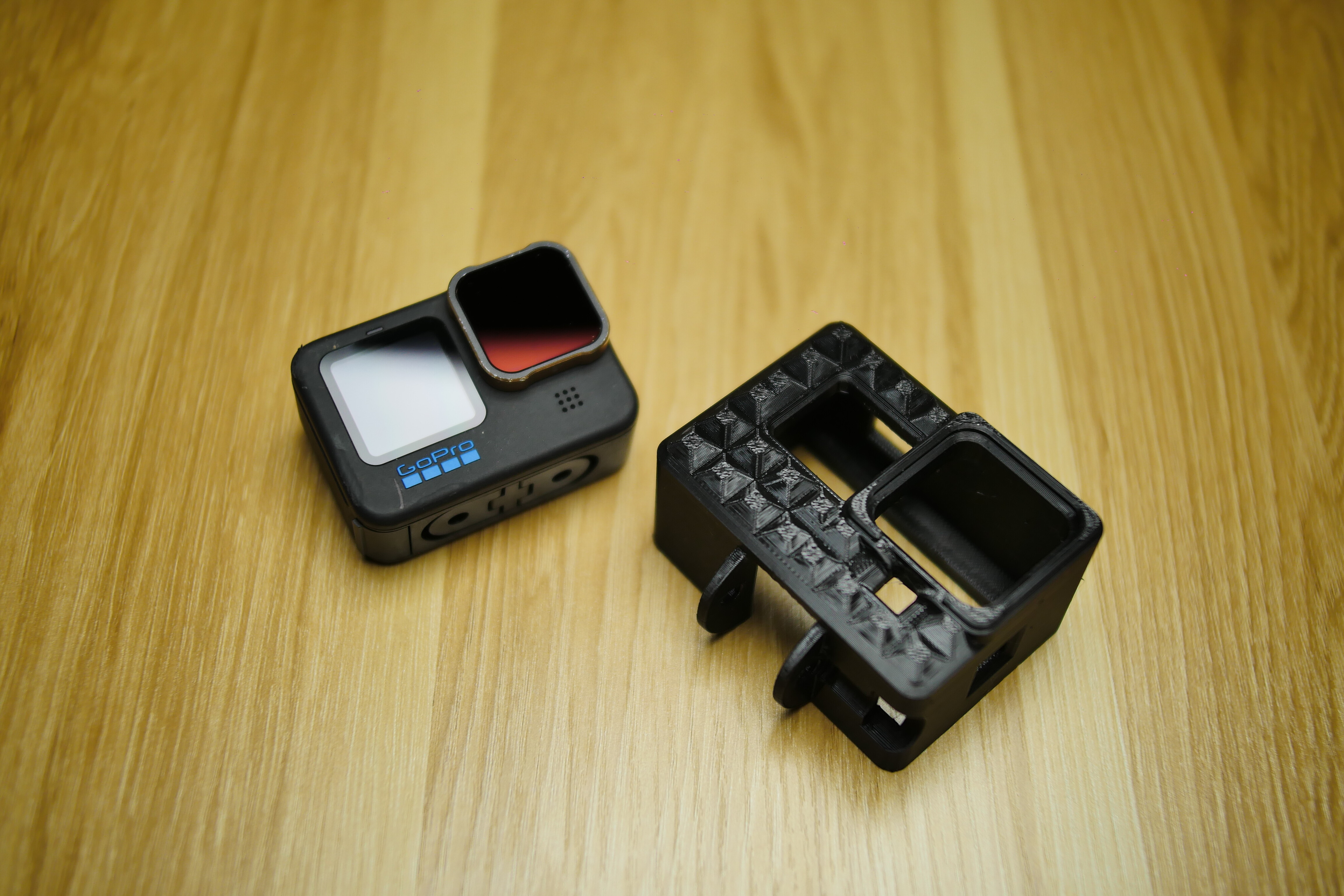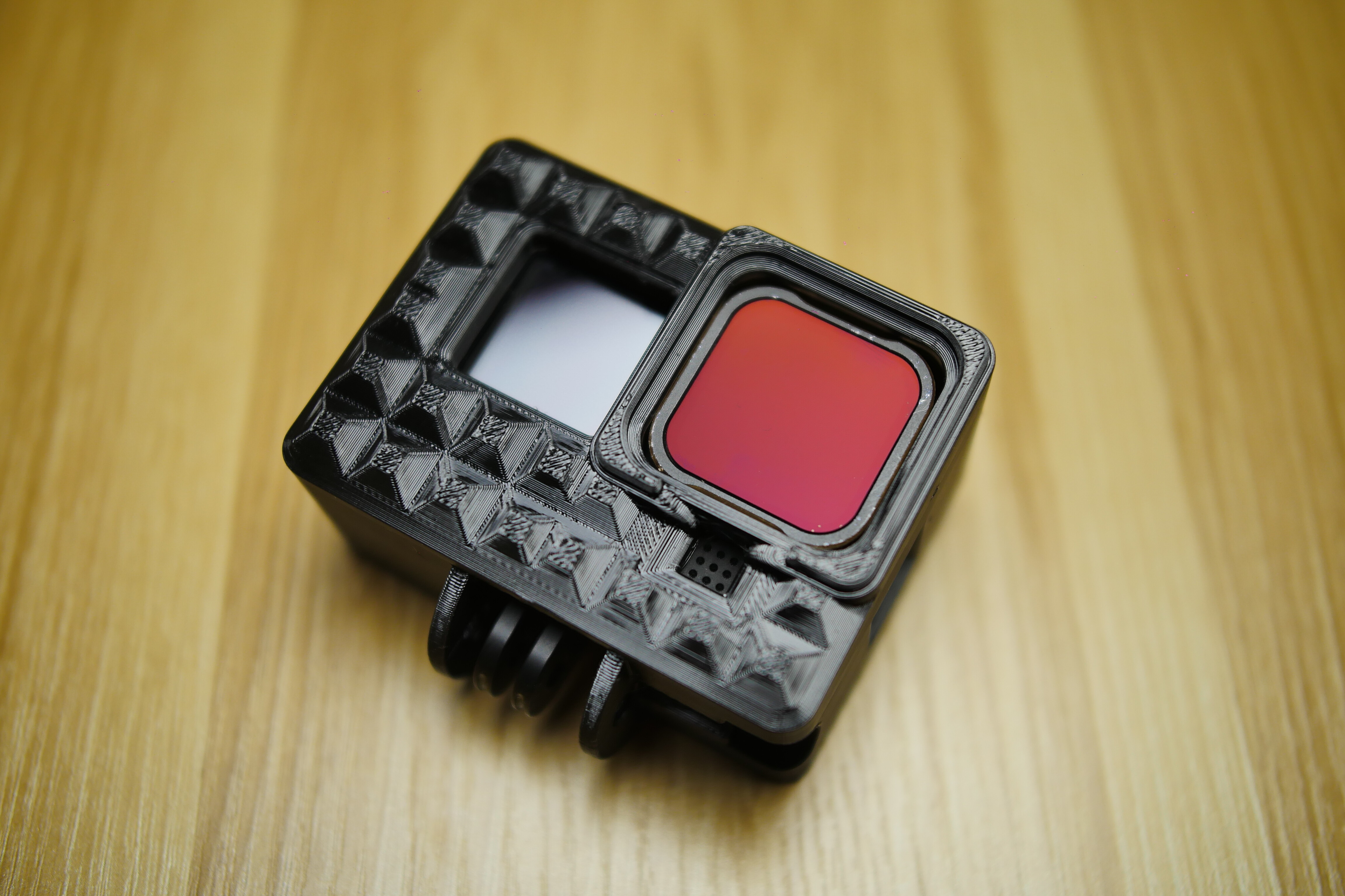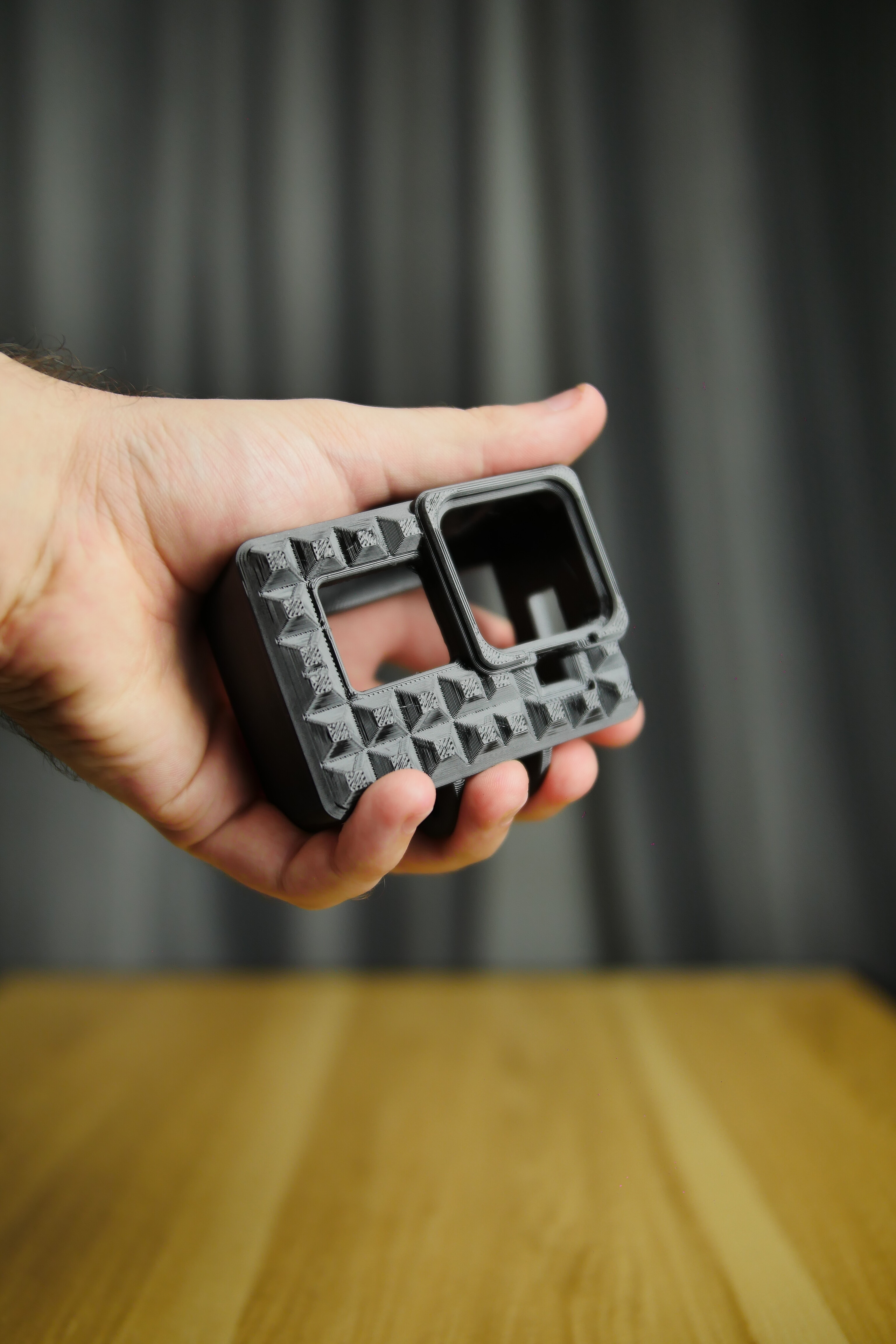 W odpowiedzi na te potrzeby prezentuję - Obudowę do Go pro wykonaną na drukarce 3D z TPU (gumowego filamentu). Twardość shore'a 85A w połączeniu z 0,5cm ściankami zapewnią idealna ochronę kamerze podczas wypadków.